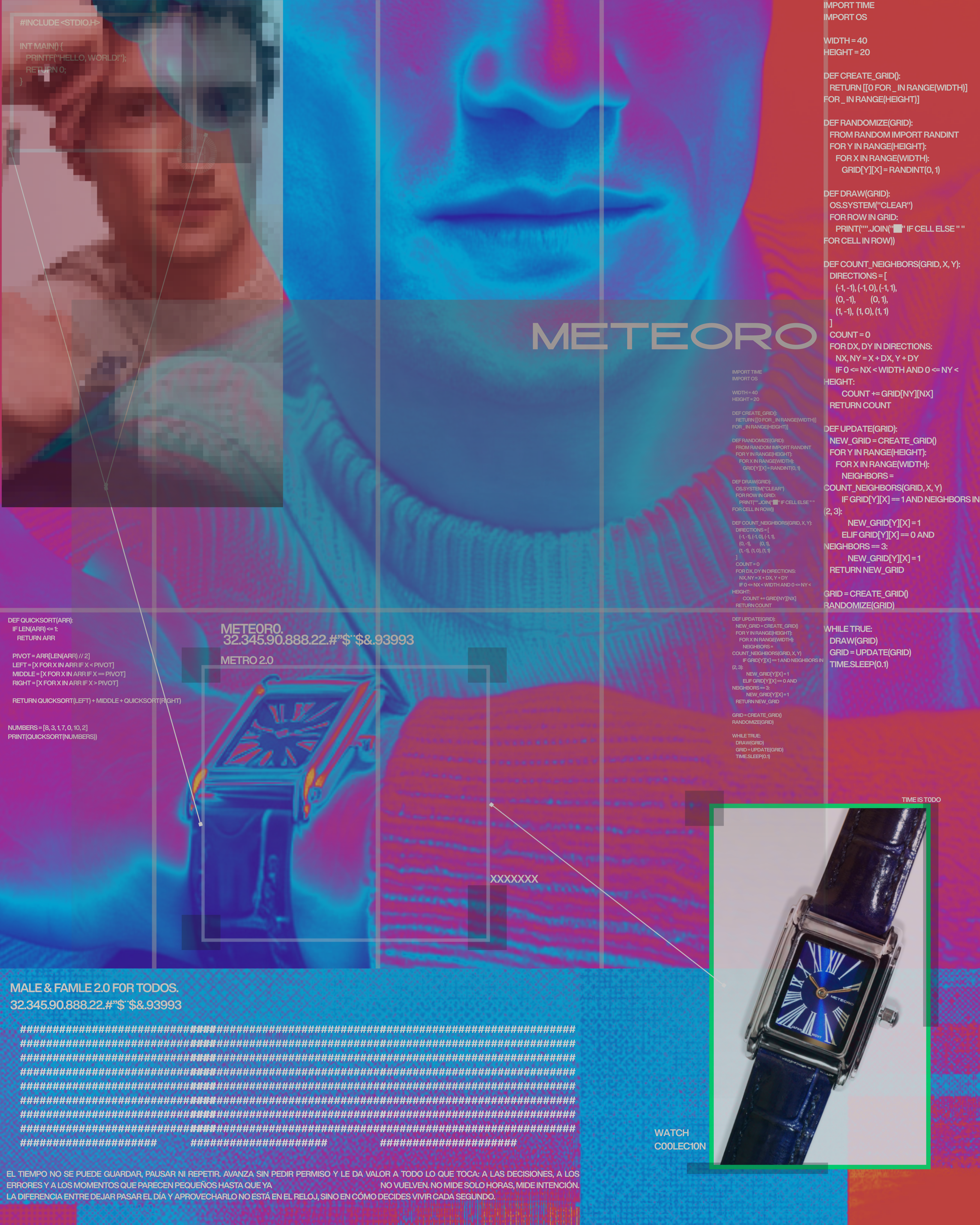 METEORO ES MUCHO MÁS QUE UNA MARCA DE RELOJES; ES EL COMIENZO DE UNA EXPERIENCIA DISRUPTIVA. METEORO OFRECE UNA VERSIÓN ÚNICA DE CLÁSICOS QUE QUEREMOS QUE NOS LLEVEN A RECORDAR MOMENTOS DEL PRESENTE.